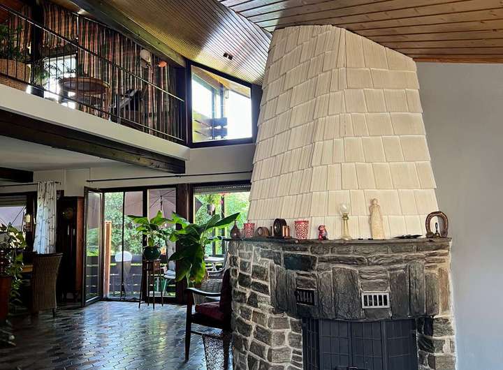 Über das mit Travertin ausgelegte zentrale Treppenhaus gelangen Sie in die Wohnräume im Obergeschoss. Sie betreten den loftartigen Küchen-, Ess- und Wohnbereich. Auf rund 210 m² erstreckt sich Ihr neues Zuhause über zwei Etagen, welche durch eine Wendeltreppe miteinander verbunden sind. Der große Wohn- und Essbereich mit offenem Kamin stellt das Herzstück Ihrer neuen Wohnung dar – hier lässt es sich ausgezeichnet leben.