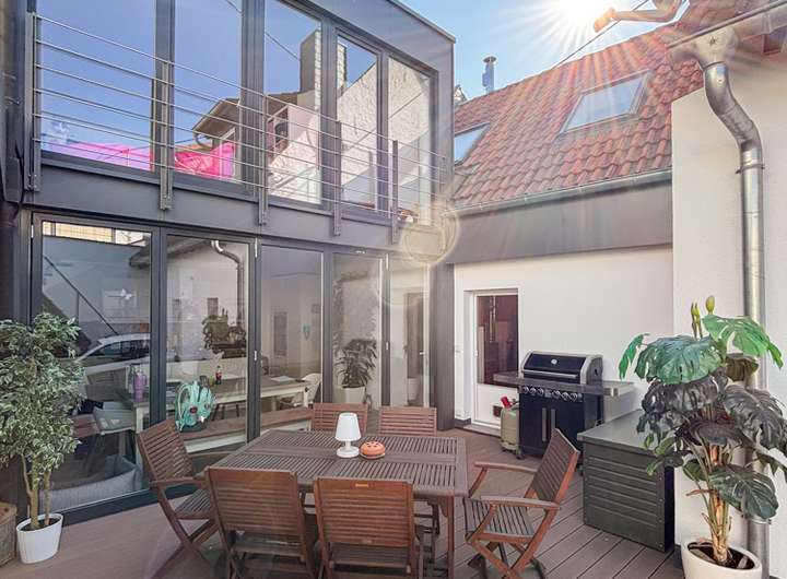 Im Innenhof befindet sich eine große Werkstatt von ca. 40 m²,ein Traum für Handwerker jeglicher Gewerke. Die darüberliegende, riesige Sonnenterrasse garantiert genussvolle Tage und Abende!