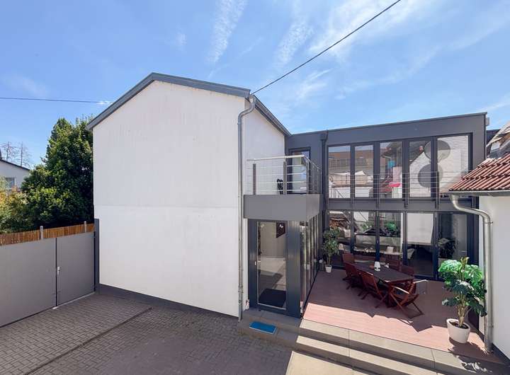 Mitten in Hofheim-Wallau treffen sich auf einem Grundstück zwei Wohnwelten: Moderne Lifestyle-Immobilie in Symbiose mit geschmackvollem Landhausstil!