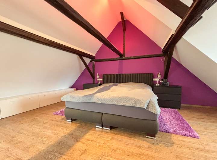 - Freigelegte Deckenbalken in Wohn- & Schlafzimmer