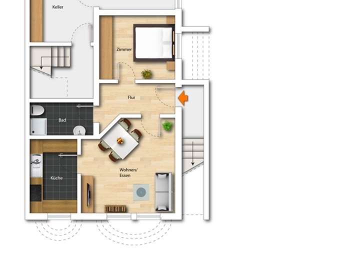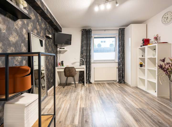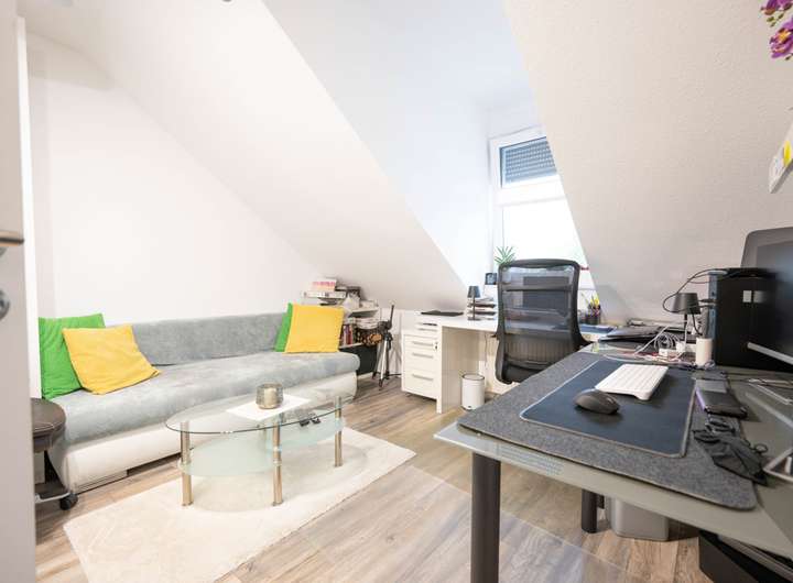 Dieses Haus verfügt über eine separat zugängliche Einliegerwohnung. Sie ist rund 46,5 m² groß und verfügt über einen großen Raum, der derzeit in zwei Räume unterteilt ist, ein weiteres Zimmer, ein Duschbad und einen Flur. Wer die Räume für sich nutzen möchte, kann diese auch direkt vom Treppenhaus aus begehen. Das ist ideal, wenn zum Beispiel ein älteres Kind hier sein Domizil bekommt oder Sie die Räume als großes (Homeoffice-)Büro für Ihre Firma, als Freiberuflerpraxis, für ein kleines Studio oder ähnliches nutzen möchten. Natürlich können Sie die Einliegerwohnung auch vermieten.