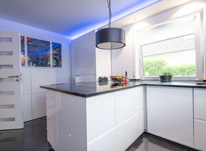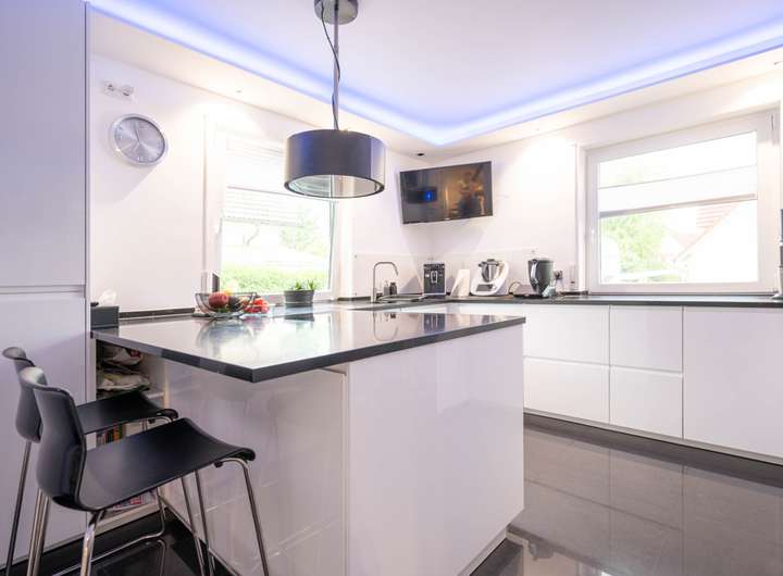 - neue Küche mit schwarzer Granitplatte