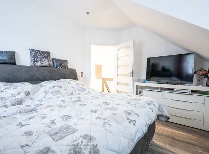 Im Dachgeschoss stehen Ihnen gleich vier !!! weitere Zimmer unterschiedlicher Größe zur Verfügung. Auf der Etage befindet sich auch das Hauptbad. Es ist üppige 10 m² groß und ein echter Hingucker, wie Sie auf den Bildern sehen können. Vor Ort ist es noch schöner.