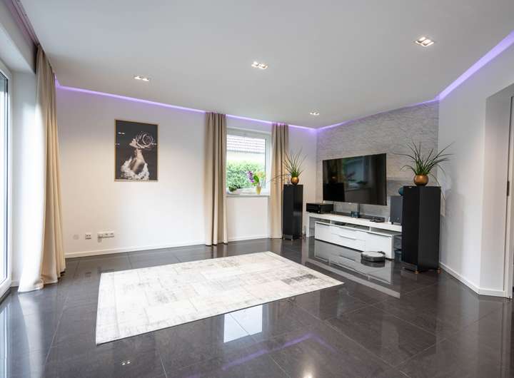 Das Haus wurde 1990 gebaut. Die Ausstattung wurde aber bereits 2018 einmal fast komplett erneuert. So aufwendig, wie es diese Familie gemacht hat, können wir es nur selten präsentieren. Die Eigentümer zeigen Ihnen gern mal die Vorher-Bilder. Sie werden denken, Sie stehen in einem anderen Haus.