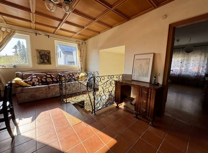 Zum Verkauf steht ein 1977 erbautes Zweifamilienhaus in Niedernhausen-Oberjosbach. Das Haus wurde in Massivbauweise errichtet und ist voll unterkellert. Es bietet zwei Hauptwohnungen: Eine im Erdgeschoss sowie Untergeschoss mit insgesamt ca. 201 m² und eine im Dachgeschoss mit ca. 142 m². Die Dachgeschosswohnung verfügt über zwei große Balkone. Zusätzlich hat die Wohnung durch ihr eigenes Treppenhaus Zugang zum Keller, der exklusiv zu dieser Wohnung gehört. Dort befindet sich ein separates Bad mit Sauna sowie zusätzliche Abstellmöglichkeiten. Die beiden Hauptwohnungen verfügen jeweils über einen klassischen Kachelofen, welche den Charme dieses Landhauses unterstreichen. Außerdem gibt es eine separate Einliegerwohnung mit ca. 34 m² Wohnfläche im Erdgeschoss. Sämtliche Einheiten können direkt miteinander verbunden werden.