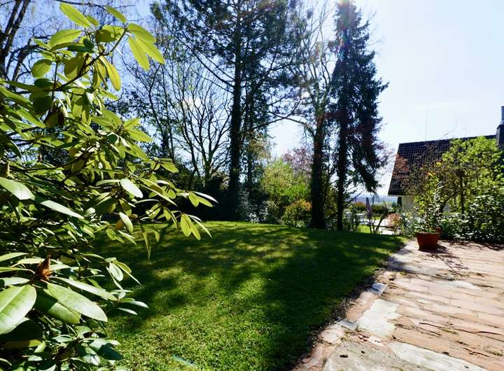 Das Grundstück umfasst 767 m² und liegt in einer sonnigen Lage. Der Garten ist eine grüne Oase, die seitlich einen Weitblick in die Ferne bietet und tolle Momente in der Natur und ruhigen Umgebung ermöglicht.