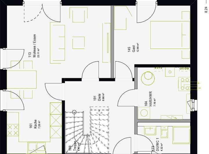 Das Haus entspricht in seiner Basis einem modernen Niedrigenergie-Haus (KfW 55).