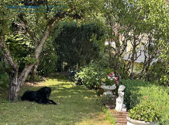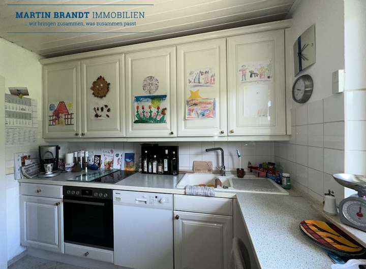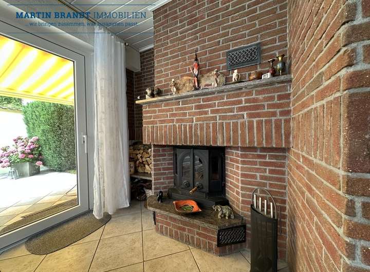 Das Herzstück des Hauses bildet der großzügige Wohnbereich mit Kamin, der zu entspannten Stunden einlädt. Die Küche ist mit einer praktischen Einbauküche ausgestattet, die Hobbyköche begeistern wird. Der Boden im Haus ist mit stilvollen Fliesen und Laminat versehen, die der Ausstattung eine zeitlose Note verleihen. Alle Decken sind mit Holz in weiss getäfelt.