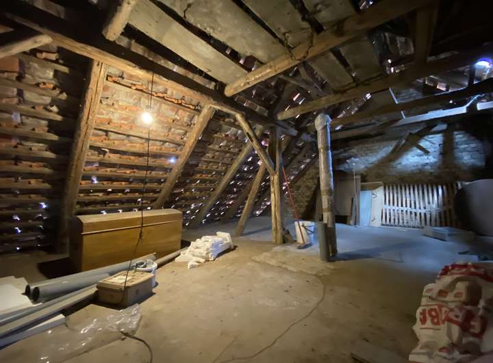 Der Dachstuhl ist bislang nicht ausgebaut, sodass sich die Chance bietet, zusätzlichen Wohnraum zu schaffen oder ein neues Projekt zu verwirklichen.