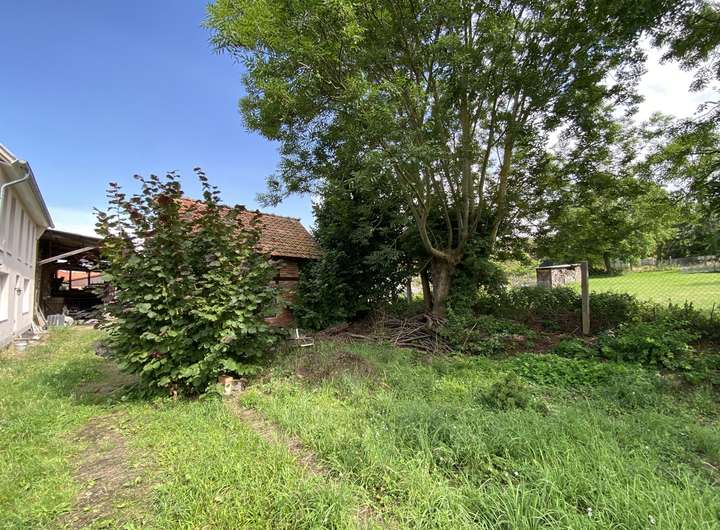 Direkt angrenzend befindet sich eine charaktervolle Scheune mit Sanierungsbedarf, die aber enormes Potenzial bietet: Ob als Werkstatt, Atelier, Hobbyraum oder für die Tierhaltung – hier lassen sich viele Ideen umsetzen.