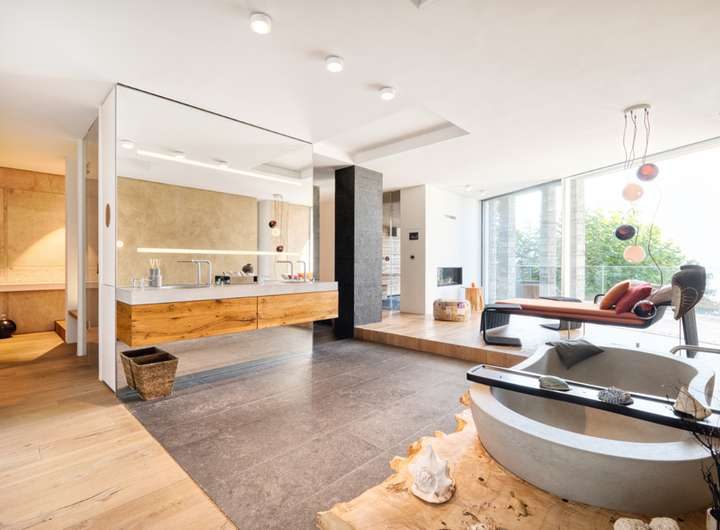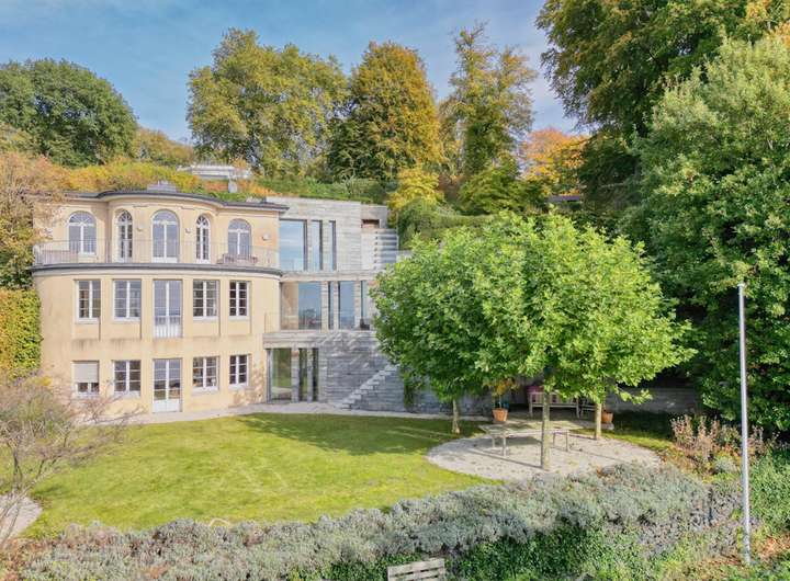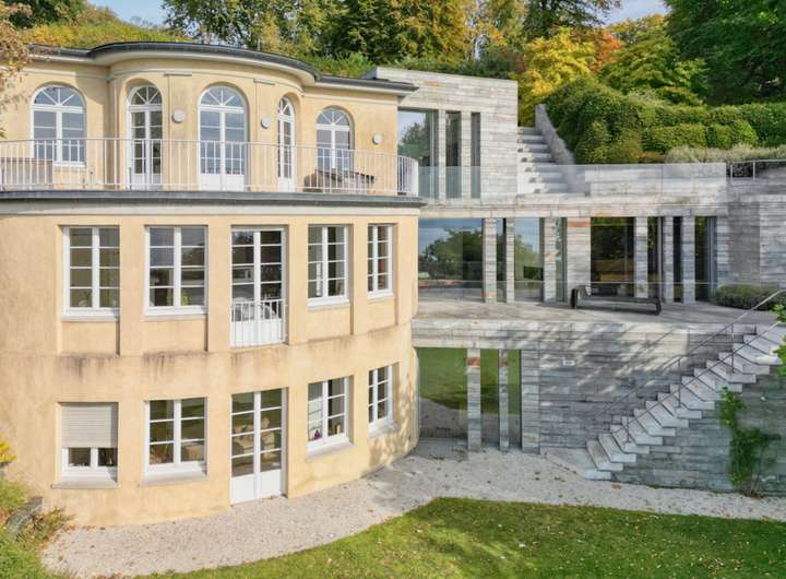 BEKANNT AUS DIVERSEN PUBLIKATIONEN IM BEREICH ARCHITEKTUR, MEISTERHAFT AUSGEFÜHRT UND IN PERFEKTER DESIGNSPRACHE AUFEINANDER ABGESTIMMT, BESTEHT DIESE VILLA AUS EINEM EINHUNDERT JAHRE ALTEN DENKMALGESCHÜTZTEN, AUFWENDIG SANIERTEN GEBÄUDETEIL SOWIE EINEM ERST IM JAHRE 2015 ERRICHTETEN DESIGN-NEUBAU.