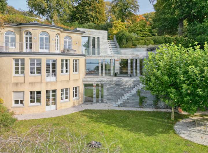 EINST VON DEM BEKANNTEN HAMBURGER ARCHITEKTEN MAX BACH ERRICHTET UND JÜNGST VON EINEM TEAM AUS ARCHITEKTEN UND DESIGNERN ERWEITERT, WURDE HIER MIT GROSSEM AUFWAND UND VIEL LIEBE ZUM DETAIL IN PERFEKTER KOMBINATION AUS EXPONIERTER TOPLAGE MIT ATEMBERAUBENDEM ELBPANORAMA, EINMALIGER ARCHITEKTUR UND HIGH-ENDAUSSTATTUNGSSTANDARDS, EINE DER HERAUSRAGENDSTEN IMMOBILIEN DES GESAMTEN BLANKENESER ELBHANGES GESCHAFFEN.