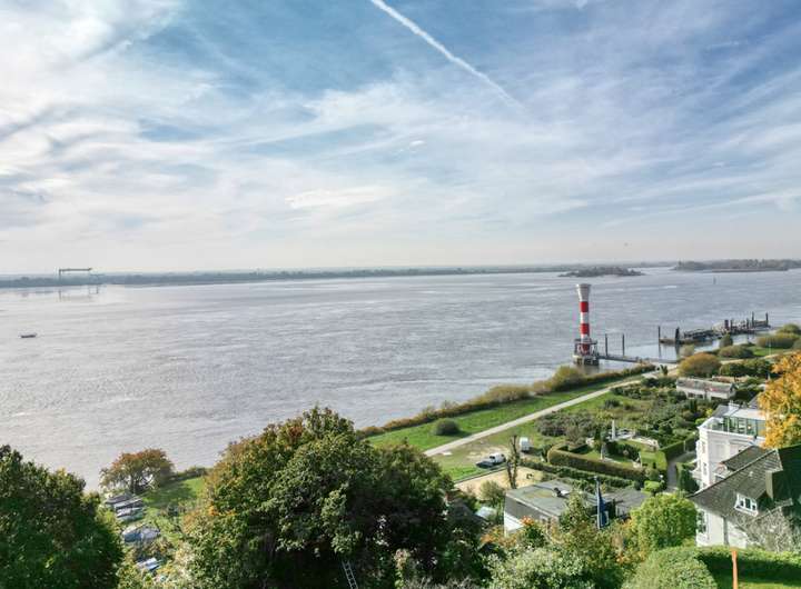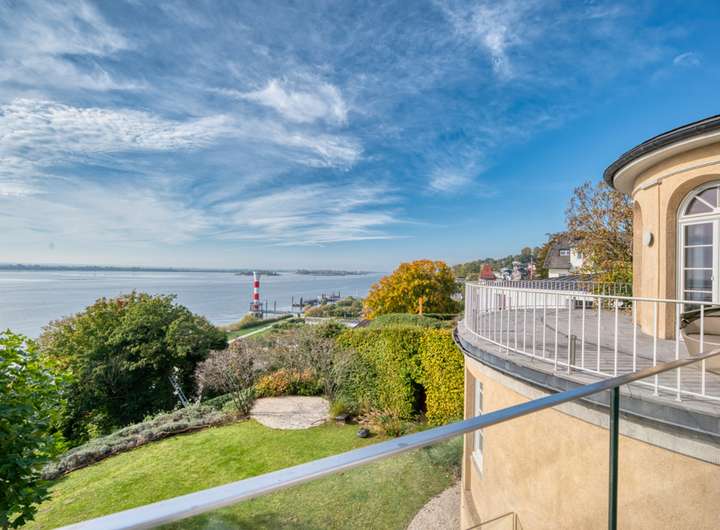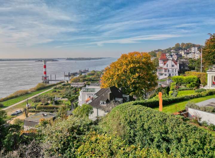 DIESE EXKLUSIVE, EINMALIGE VILLA BEFINDET SICH IM SOGENANNTEN "TREPPENVIERTEL", IN ALLERBESTER LAGE AM ELBHANG UND DARÜBER HINAUS NOCH IN "ERSTER WASSERLINIE" INKLUSIVE UNVERBAUTEM PANORAMABLICK ÜBER DIE ELBE, DIREKT ANGRENZEND AN DEN BAURS PARK IN HAMBURG-BLANKENESE UND DAMIT IN EINER DER BEGEHRTESTEN TOP-ADRESSLAGEN.