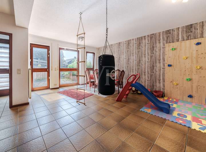 Dieses großzügige Einfamilienhaus mit Einliegerwohnung präsentiert sich mit viel Platz, hellen Räumen und einer schönen Fernblicklage in die umliegenden Wälder. Die Immobilie bietet eine gelungene Kombination aus Wohnkomfort, vielseitigen Nutzungsmöglichkeiten und naturnaher Umgebung – ideal für Familien, die Wert auf ein gehobenes Platzangebot, Flexibilität und ein behagliches Zuhause legen.