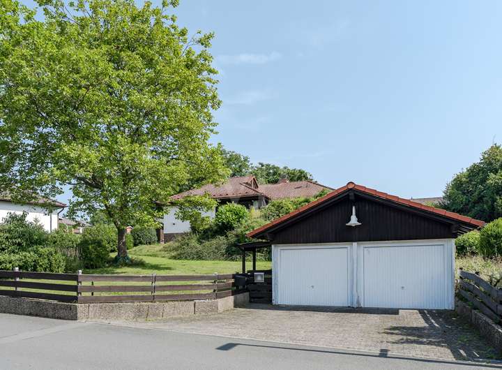 - Zwei Garagen mit Dachboden und zwei Stellplätze davor