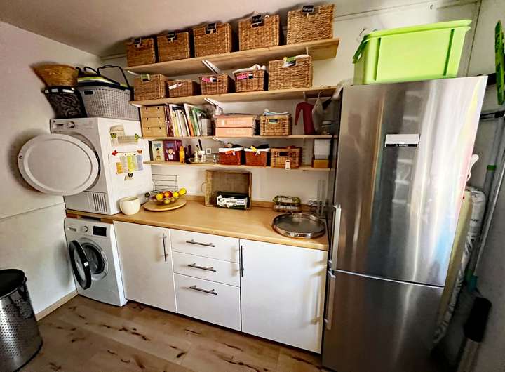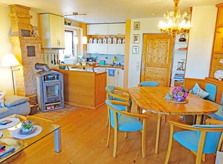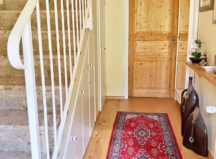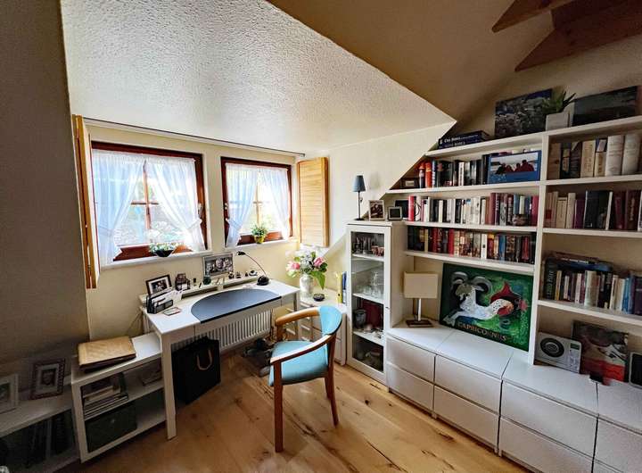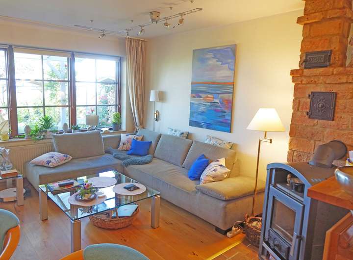 Eine liebevolle Ausstattung, hochwertige Holzböden, der Kaminofen und die zeitgemäßen Bäder sorgen für ein heimeliges Domizil. Die Räume sind alle gut geschnitten und lichtdurchflutet. Im ganzen Haus wurden Stauräume geschaffen, nicht zuletzt auch auf dem erstklassig ausgebauten und gut gedämmten Dachboden, sodass die Immobilie zu einem wahren Raumwunder mutiert.