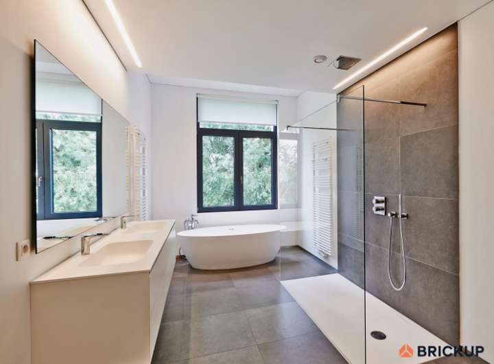- Praktische Badgestaltung mit ebenerdiger Dusche und Badewanne