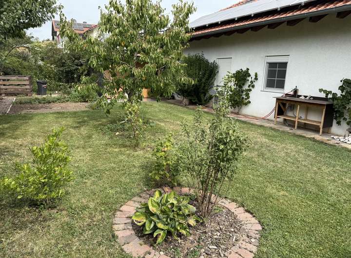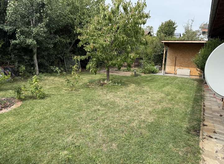 Zum Haus gehört noch ein großer, liebevoll gehaltener Garten mit Geräteschuppen, der sich nahtlos an den Carport anschließt.