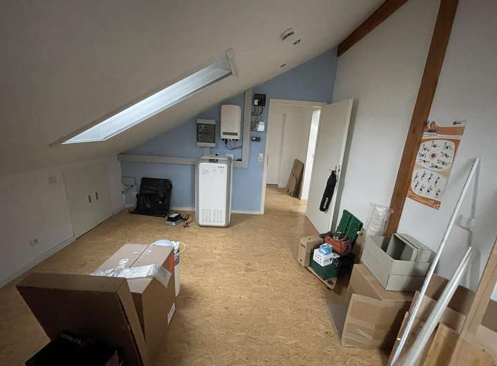 Ebenfalls im DG befindet sich die Inneneinheit der Wärmepumpe und der Warmwasserboiler.