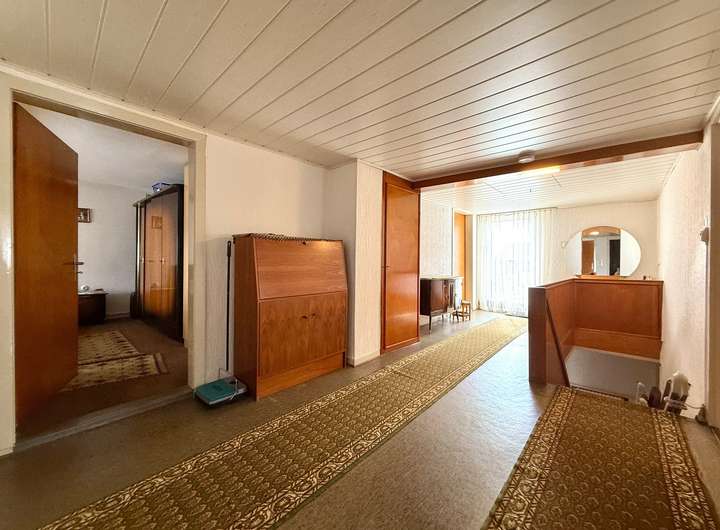 Dieses großzügige Wohnhaus mit rund 207 m² Wohnfläche auf einem 1.105 m² großen Grundstück erzählt viele Geschichten und wartet nun auf neue Eigentümer, die es in die Zukunft führen. Das Gebäude mit einer Deckenhöhe von 2,05 bis 2,15 Metern bietet reichlich Platz, ist jedoch modernisierungsbedürftig und damit ideal für kreative Köpfe, die ihre eigenen Wohnideen verwirklichen möchten.