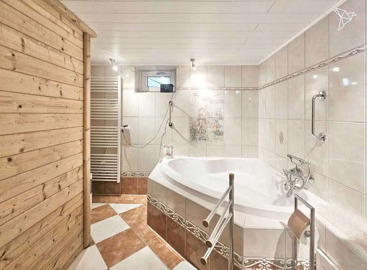 Das Haus verfügt über zahlreiche Annehmlichkeiten, die das Wohnen besonders machen: teilweise elektrische Rollläden, eine Sauna, eine Infrarotkabine, eine moderne Waschküche sowie eine Entkalkungsanlage für bestes Trinkwasser. Die Nachhaltigkeit bietet die Solarthermieanlage mit 6 kW thermischer Leistung.