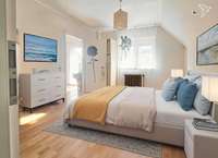 Im Obergeschoss erwarten Sie weitere gut geschnittene Räume, die sich als Schlafzimmer, Kinderzimmer oder Homeoffice nutzen lassen. Ein Balkon bietet einen schönen Blick in die grüne Umgebung – ideal, um den Tag mit einem Glas Wein entspannt ausklingen zu lassen. Die Klimaanlagen im Wohnzimmer und im Kinderzimmer ermöglichen zusätzlichen Komfort.