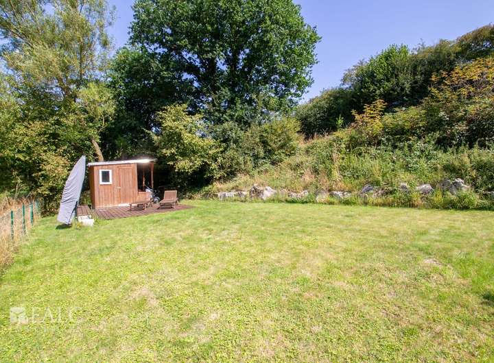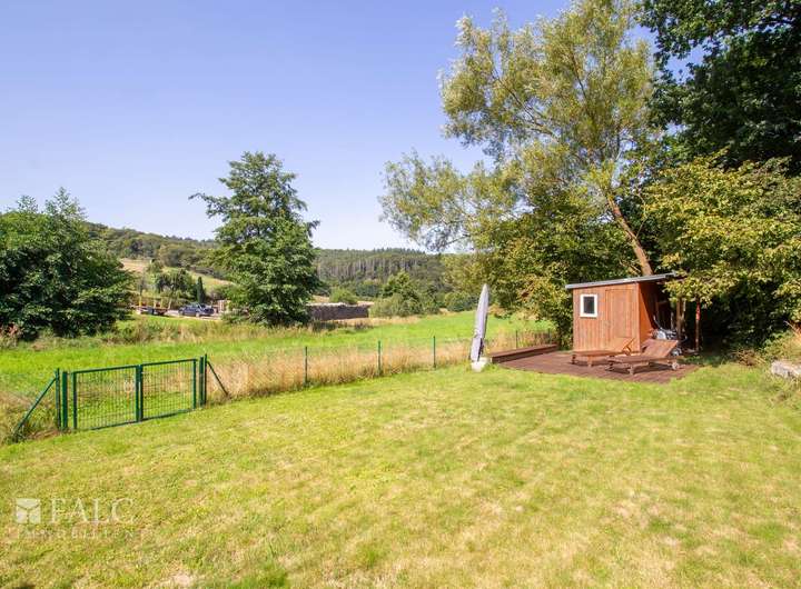 Nur wenige Meter vom Wohnhaus entfernt befindet sich eine 208 m² große eingefriedete Gartenfläche. Diese bietet Ihnen in den Sommermonaten einen enormen Freizeit- und Erholungswert. Eine kleine Gartenhütte mit Dachüberstand kann für das Lagern von Gartengeräten oder Holz genutzt werden. Eine kleine mit Holzdielen belegte Terrasse bietet genügend Platz für Liegen und Gartenbestuhlung.