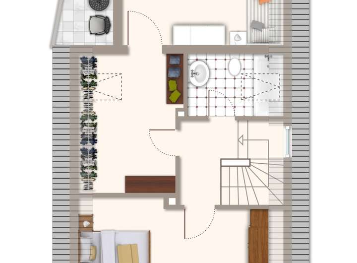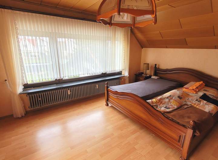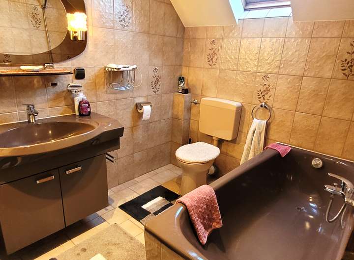 - Dachgeschoss mit 2 Schlafzimmern, Balkon, Ankleidezimmer und Wannenbad mit Fenster,