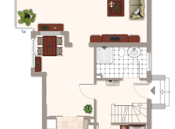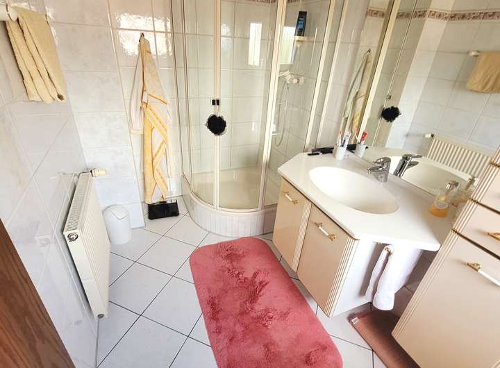 - Erdgeschoss mit Küche, Schlafzimmer, großer Wohn-Essbereich und Wintergarten, sowie Tageslichtbad mit Dusche,