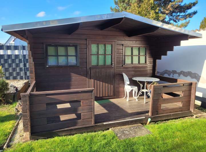 - Garage mit Nebenraum, die Fläche über der Garage wurde in der 1970er Jahren zu einem Appartement ausgebaut und 2024 komplett renoviert, eine Baugenehmigung hierfür liegt nicht vor.