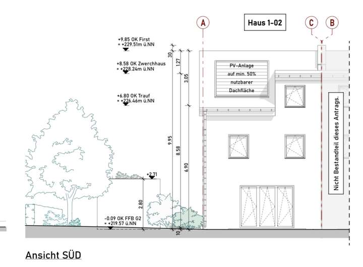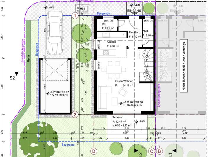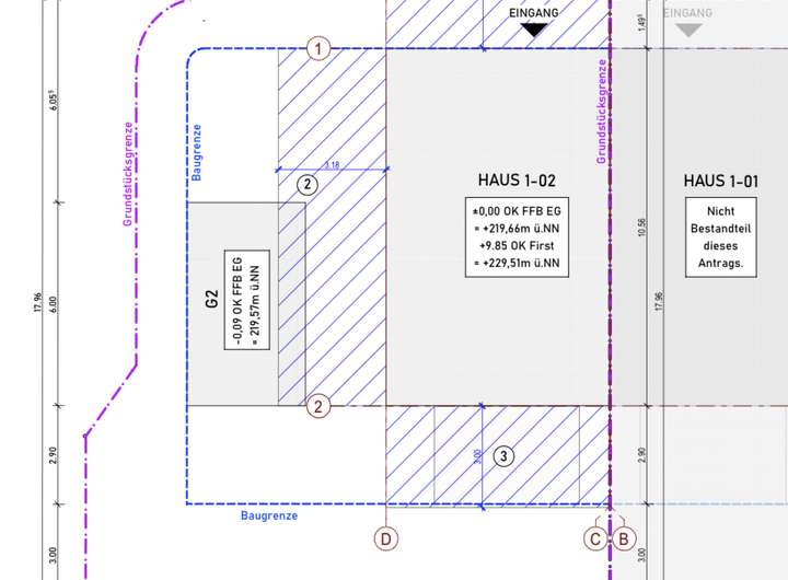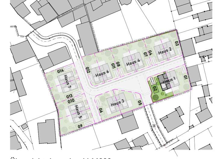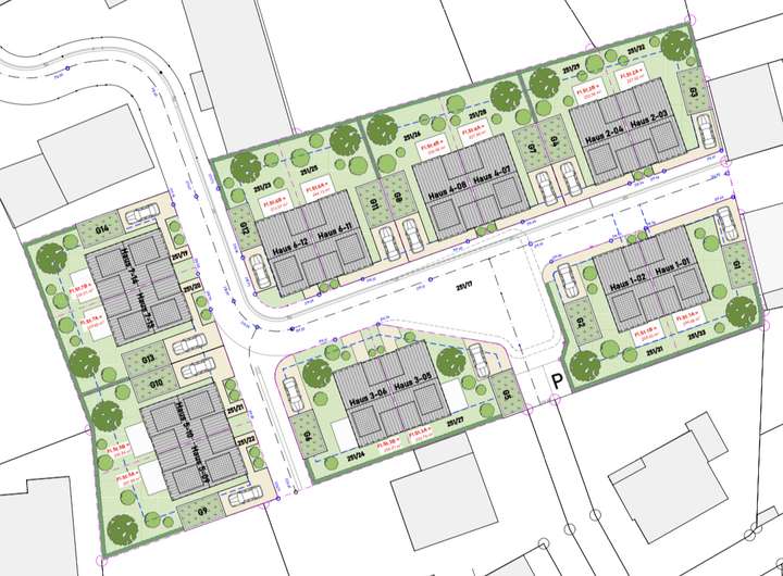 - es entstehen in absolut ruhiger Ortskernlage in zweiter Reihe 7 Doppelhäuser ( 14 Doppelhaushälften)