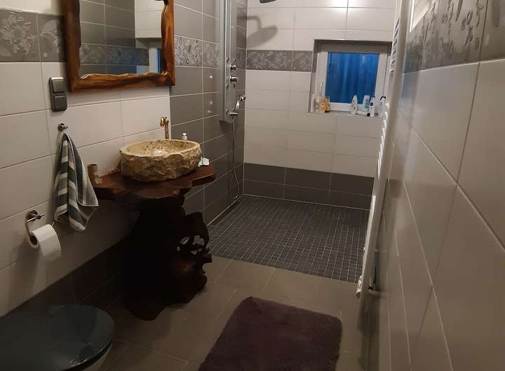 Das Haus wird über eine Pelletheizung mit 32 KW aus dem Jahr 2022 beheizt.