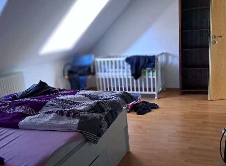 Im Obergeschoss erreichen Sie über einen kleinen Flur ein Schlafzimmer mit angrenzendem Duschbad,