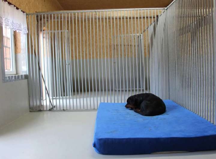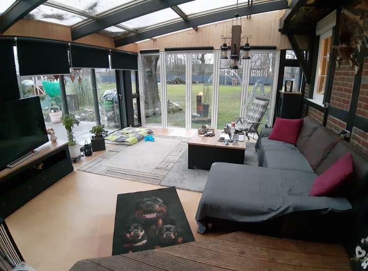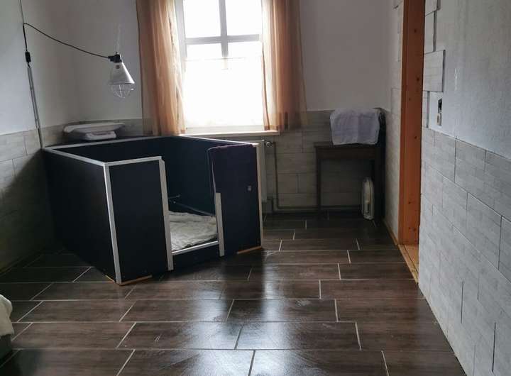 Ein Fachwerk-Nebengebäude mit ca. 100 m² Fläche wurde 2020 zu Hundezwingern mit Ausläufen ausgebaut.