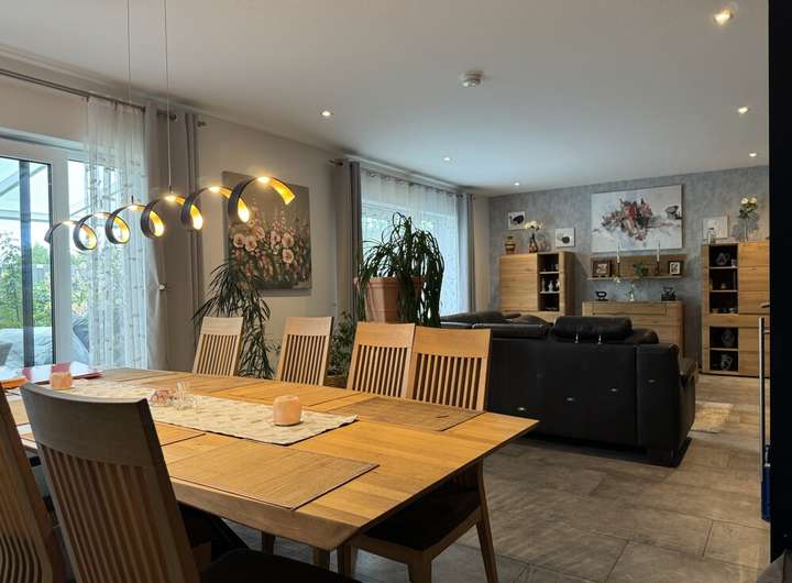 Dieser Neubau vereint die Vorzüge eines modernen Hauses mit der besonderen Wohnqualität eines Bungalows: ebenerdig, komfortabel, nachhaltig und mit Liebe zum Detail umgesetzt. Ein Zuhause, in dem Sie und Ihre Familie ankommen und bleiben können.