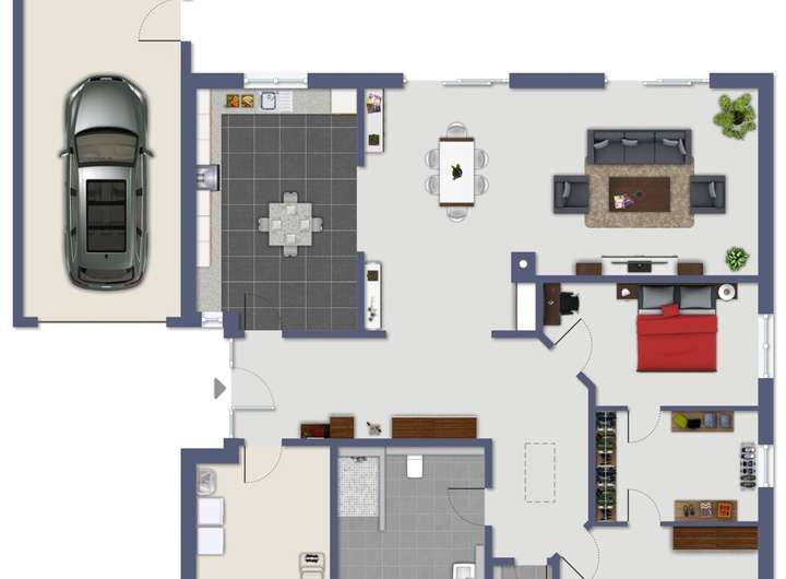 Der großzügige Eingangsbereich führt in den offenen Wohn- und Essbereich mit moderner Küche – das Herzstück dieses Bungalows. Zwei Schlafzimmer, ein begehbarer Raum als Ankleide sowie ein komfortables Bad runden das Raumkonzept ab.