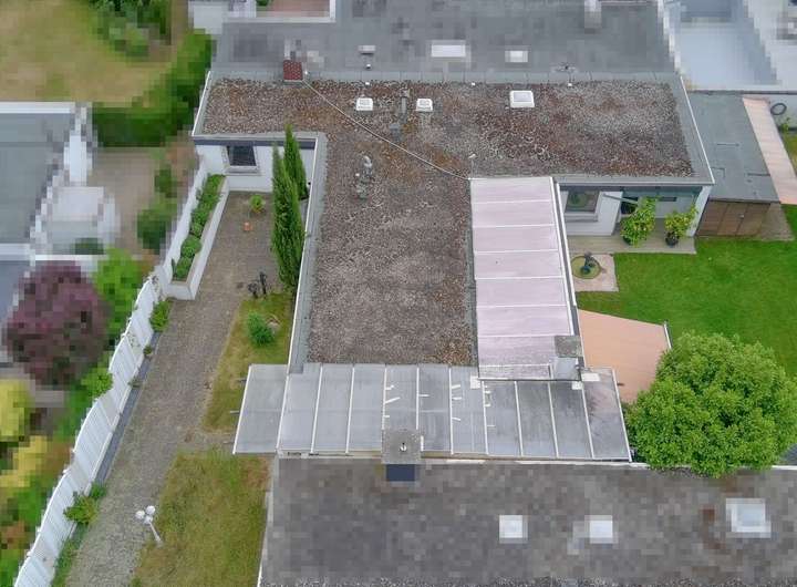 Der Bungalow ist nicht unterkellert und verfügt über ein Flachdach (erneuert 2013). Mit 5 Zimmern, teilweise mit Lichtkuppeln, einer großzügig überdachten und schließbaren Terrasse, sie besitzt auch eine Fußbodenheizung, um auch noch an kälteren Tagen die Terrasse nutzen zu können, des Weiteren einem Abstellraum und einem Hauswirtschaftsraum, so bietet das Haus viel Platz und Licht.