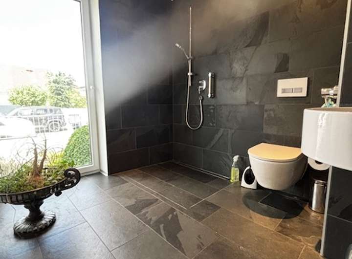 Das separate Nebengebäude ist derzeit als stilvolles Saunahaus mit Ruheraum und eigenem Badezimmer ausgestattet – Ihre private Wellness-Oase direkt vor der Haustür. Mit nur geringem Aufwand lässt sich dieser Bereich auch für andere Zwecke umgestalten, ganz nach Ihren Bedürfnissen.