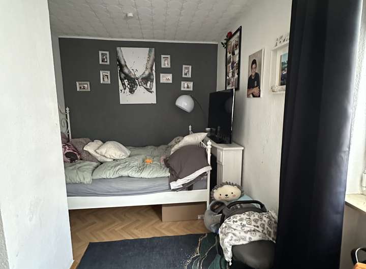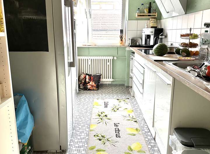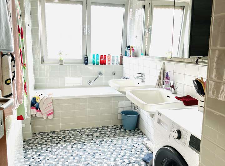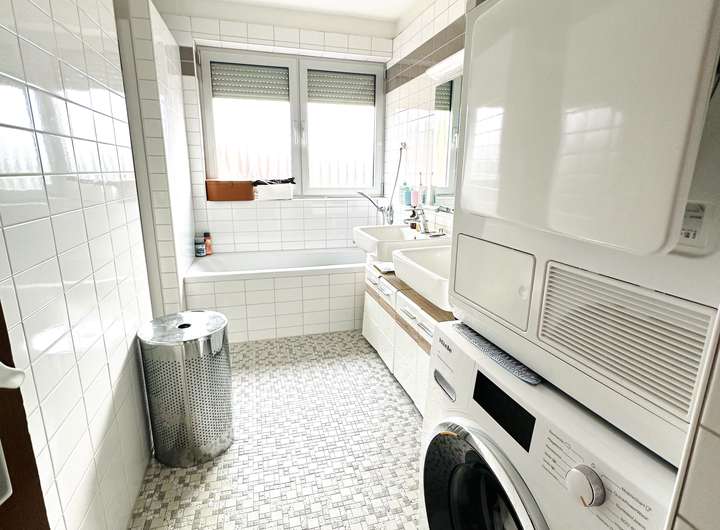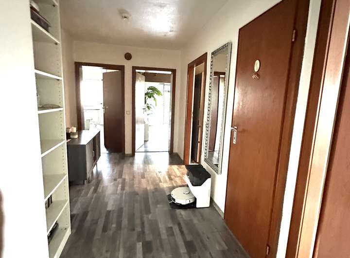 Im 1 OG. befindet sich eine ansprechende und helle 4 Zi. Wohnung mit ca. 101 qm Wfl. 3 Schlafzimmer, großes Wohnzimmer mit Ausgang zum Balkon, Küche , Gäste WC und Tageslichtbad mit Wanne.