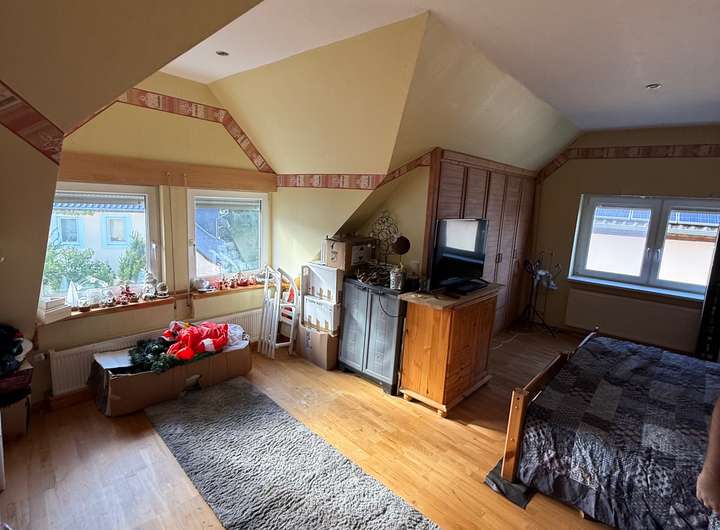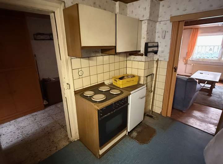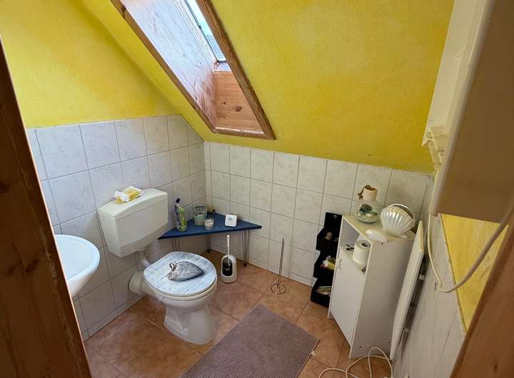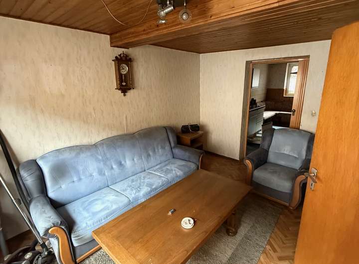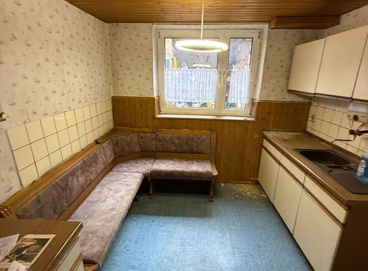 Das erste Haus wurde 1968 erweitert und hat eine Wohnfläche von 140 qm mit 6 Zimmern und 2 Bädern. Dieses Haus hat noch eine Speicher der ausgebaut werden kann und verfügt zusätzlich noch über einen charmanten Gewölbekeller. Trotz des sanierungsbedürftigen Zustandes ist diese Hause bereits an die Pelletheizung aus 2023 angeschlossen.