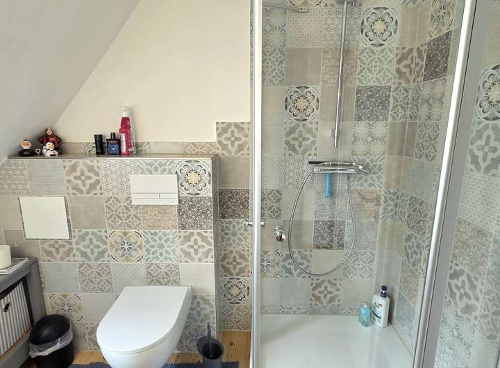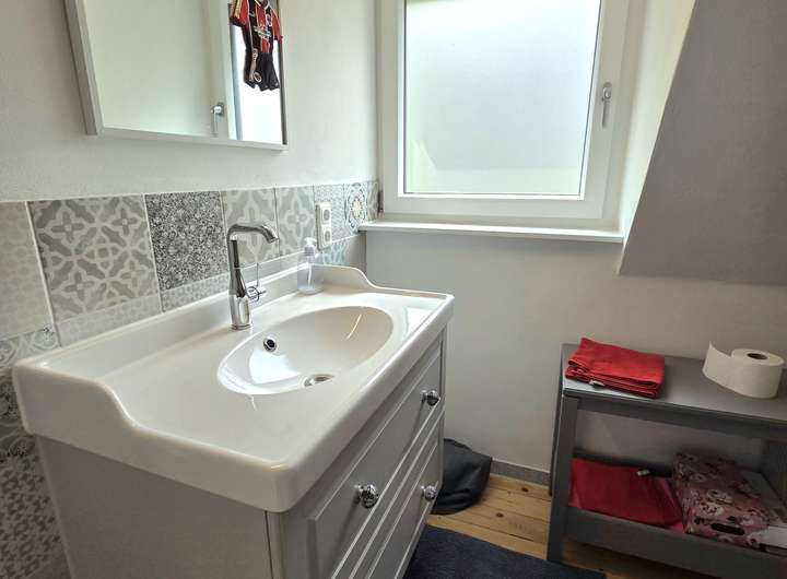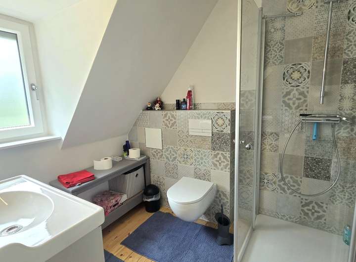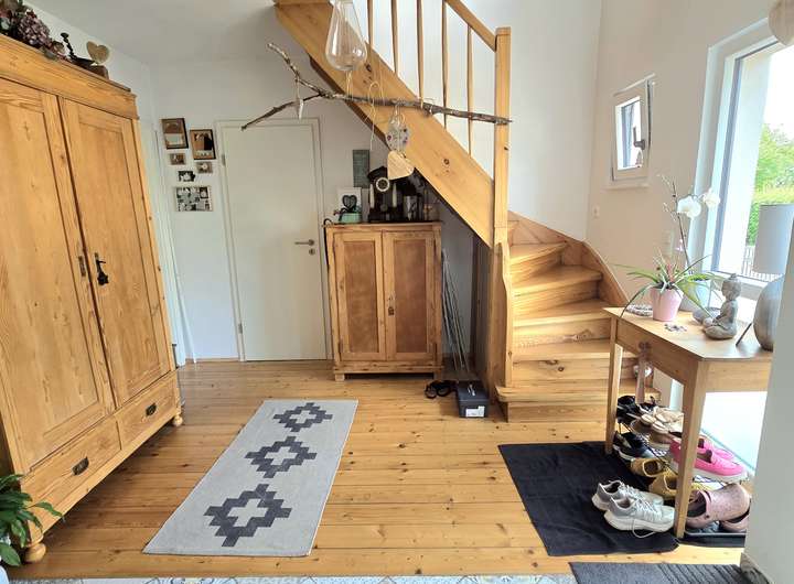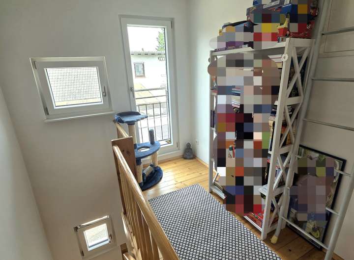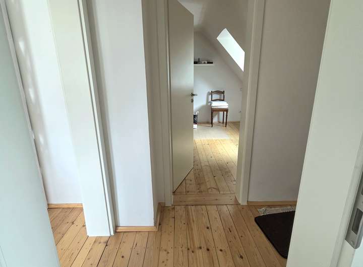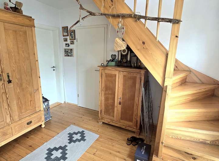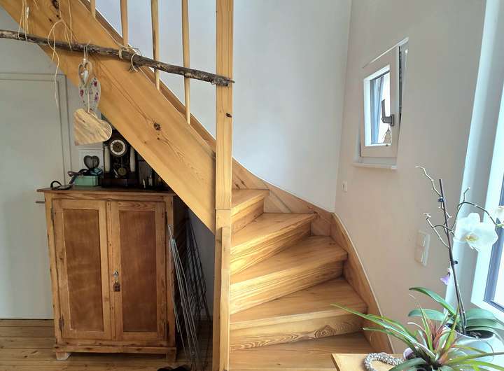 Über eine fachmännisch erneuerte Echtholztreppe erreicht man das ausgebaute Dachgeschoss.