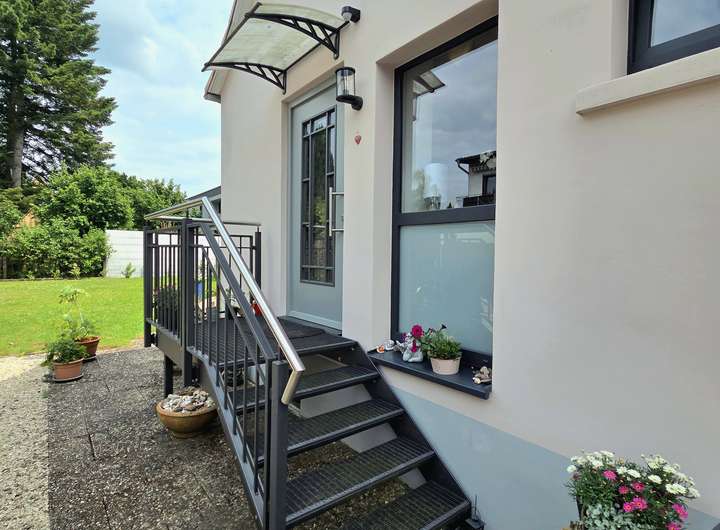 Dieses Einzelstück wurde in den Jahren 2019–2020 kernsaniert und besteht aus einem Haupthaus zur Straßenseite sowie einem nachträglich angedockten Anbau zur Gartenseite.
