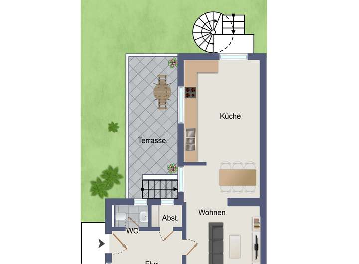 Aus dem Wohn-/Essbereich wird der Zugang zum ruhigen und gemütlichen Gartenbereich leicht gemacht.