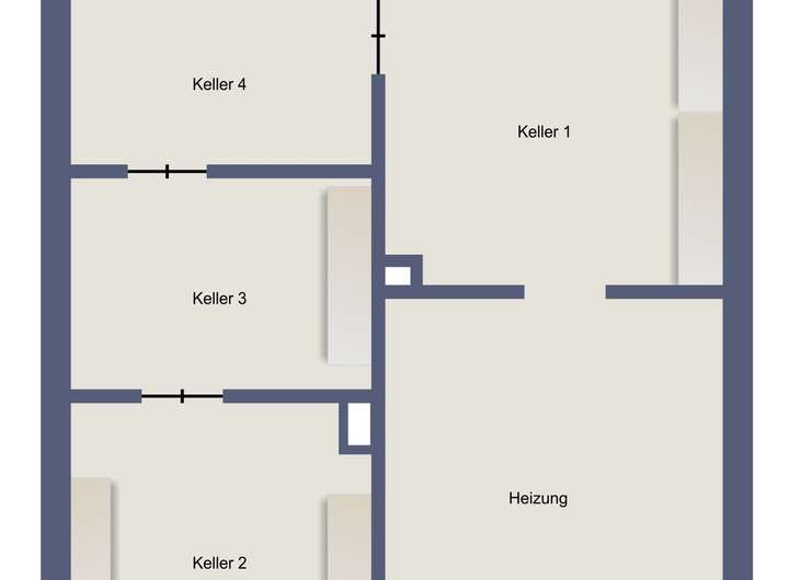 Das Objekt ist unterkellert. Der Kellerbereich besitzt eine angemessene und komfortable Höhe, sodass sich der Aufenthalt auf dieser Ebene problemfrei gestalten lässt. Hier befinden sich 4 klassische Abstellräume und ein Heizungsraum.