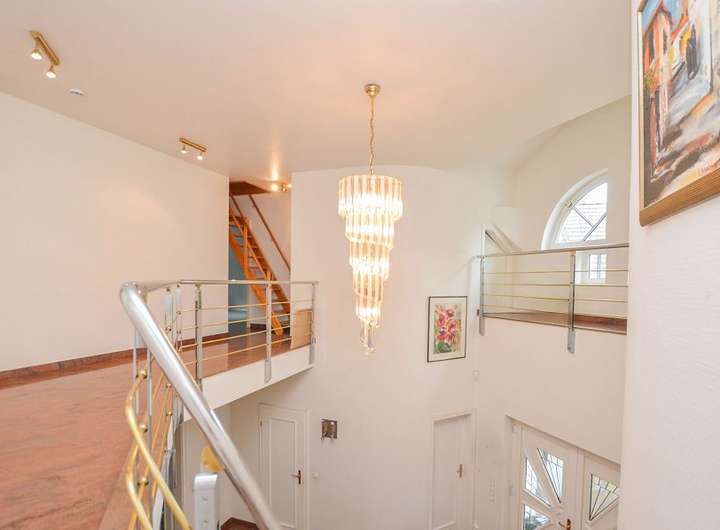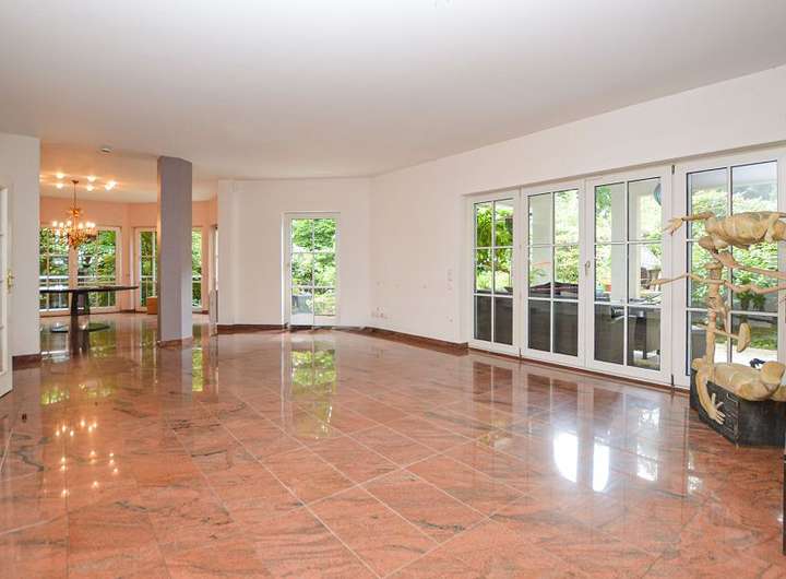 Rissen: repräsentativ & großzügig - exklusive 7 Zi. Twin-Villenhälfte mit parkähnlichem Garten Von der Straße kaum zu erkennen, präsentiert sich diese großzügig angelegte "Twin-Villa" mit vorgelagertem Garagenhaus, eindrucksvollem Säulenportal, repräsentativem Entrée u. parkähnlichem Garten mit Teichlandschaft: Ein Wohntraum am Klövensteen...!