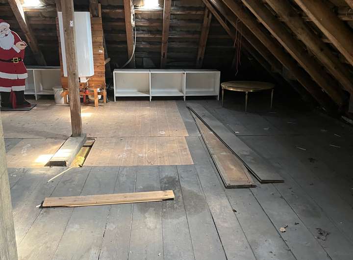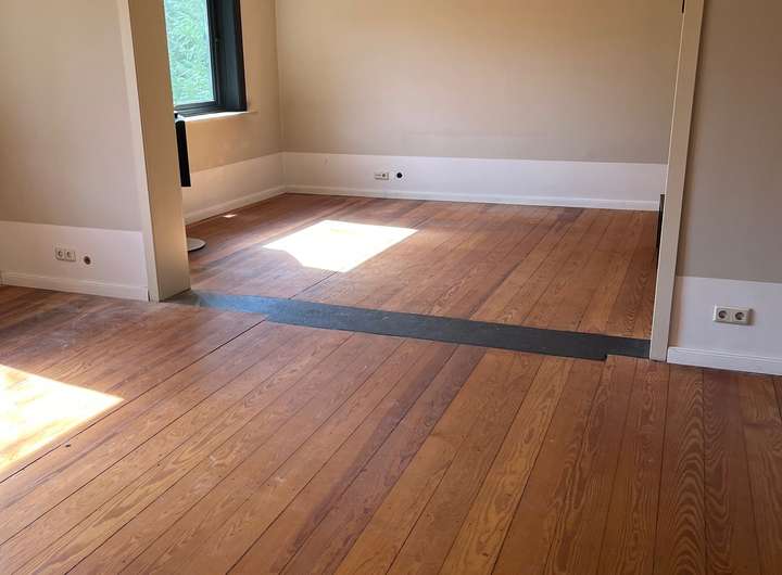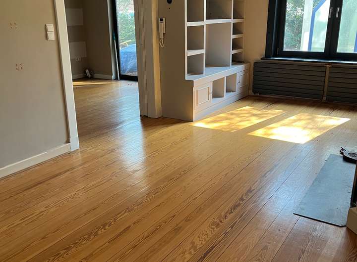 Die Fußböden überwiegend mit altem Pitchpine befinden sich in gutem Zustand.