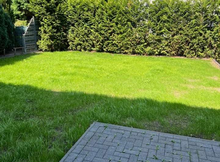 Hinter dem Haus befindet sich eine großzügige schöne Rasenfläche mit