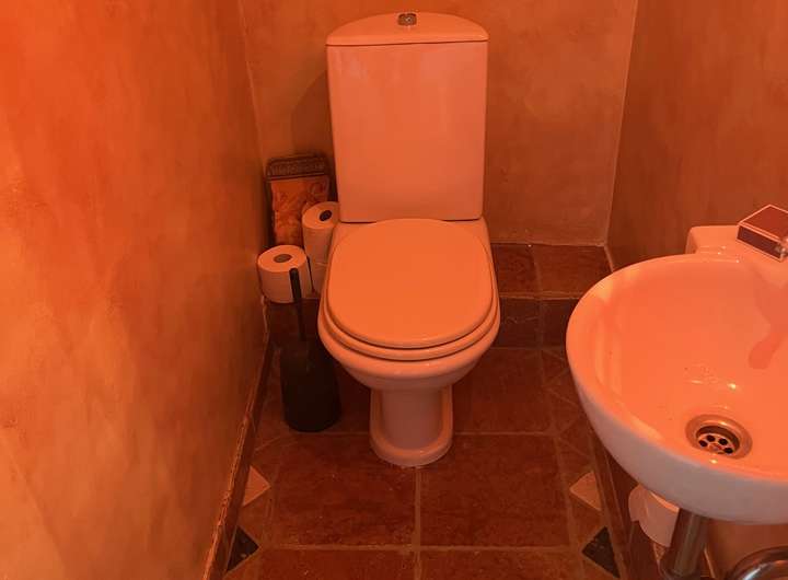 Auf der rechten Seite befindet sich neben der Treppe nach oben noch ein Badezimmer.