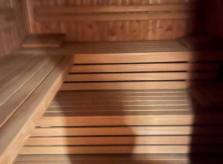 Spa Bereich mit großzügiger Sauna und Dusche mit WC.