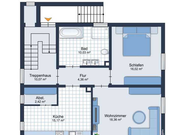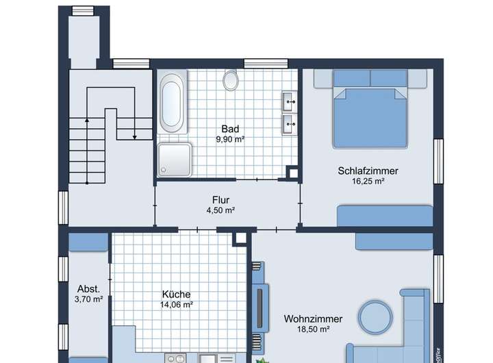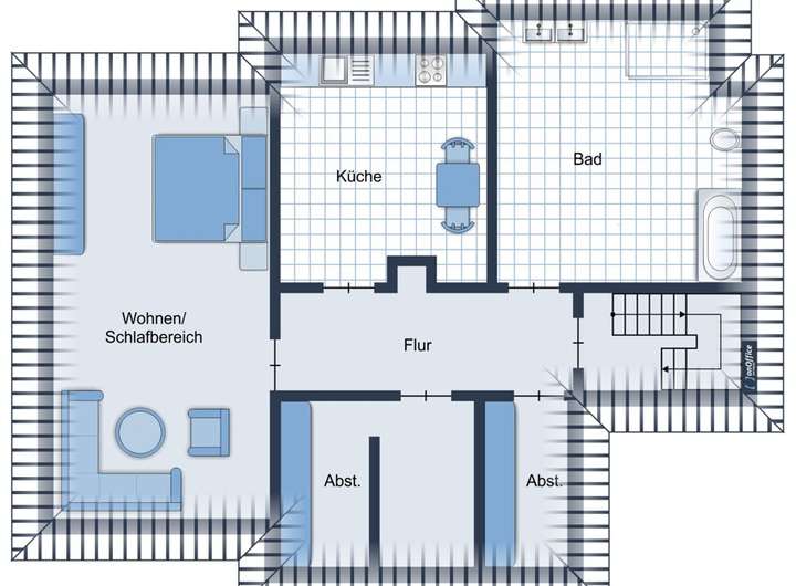 Obergeschoss: 2-Zimmer-Wohnung, ca. 70 m²